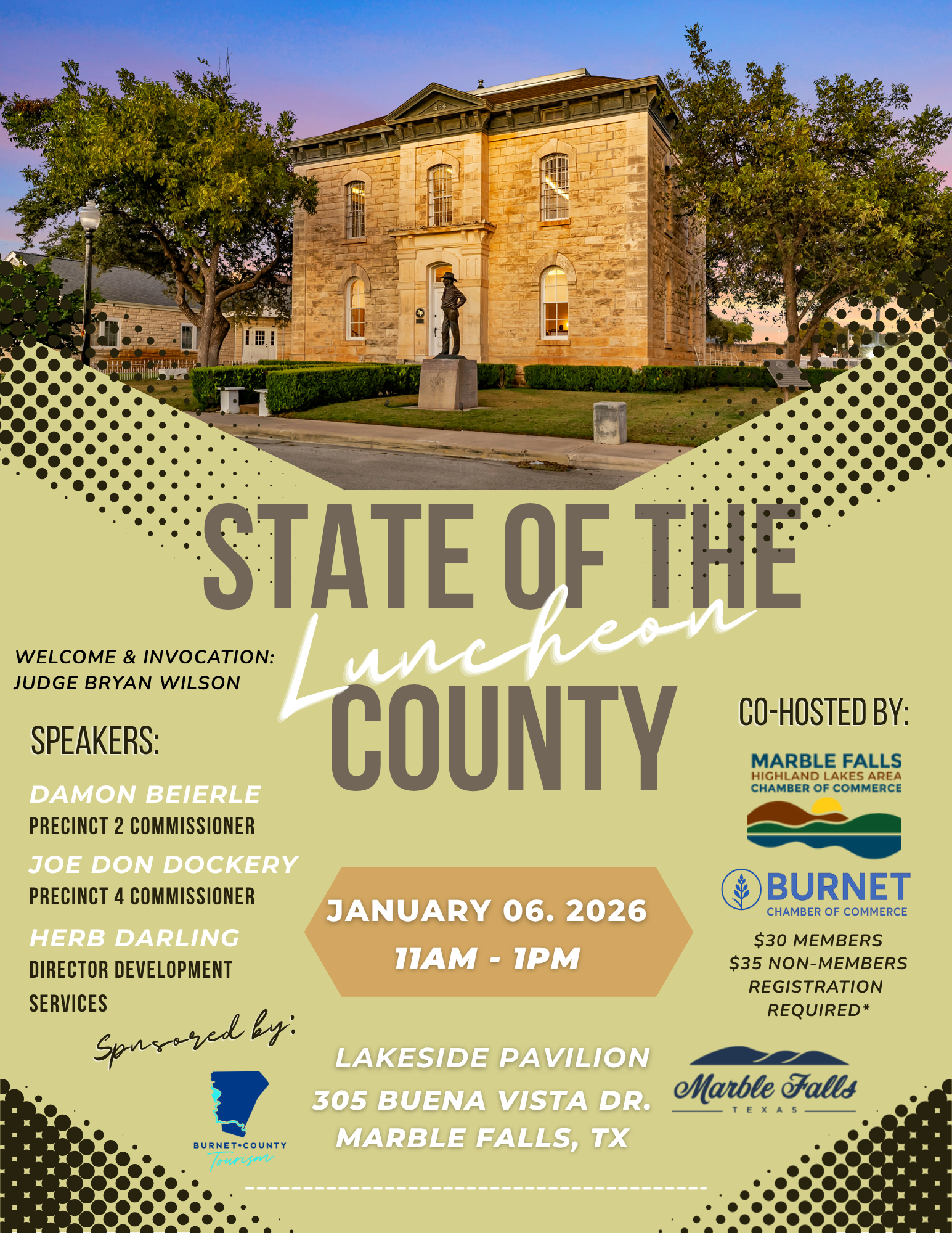 This event is co-hosted by the Marble Falls Highland Lakes Area Chamber of Commerce and the Burnet Chamber of Commerce.